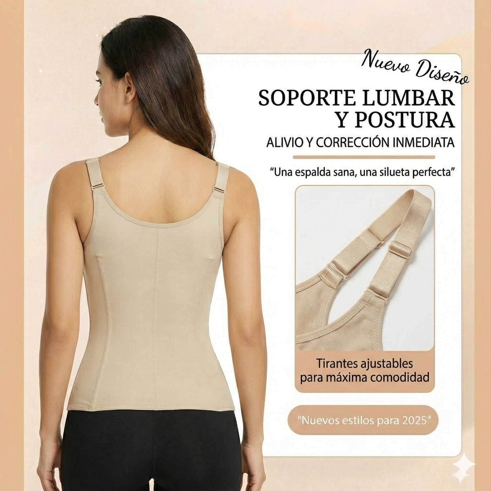 Más que una faja, es tu soporte diario. El diseño tipo chaleco te brinda control total en el abdomen mientras mejora tu postura y descansa tu espalda al instante.